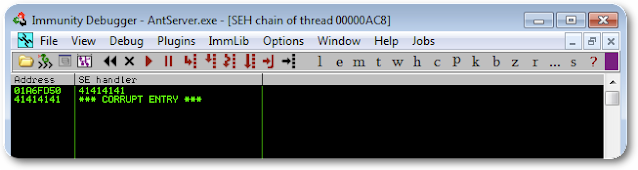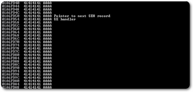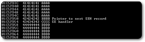 Such structures are just equal to any other data on the stack, so it is prone to abuse as well. By overwriting the exception handler addresses, you can redirect the execution to a memory space containing some malicious code to be executed. The default behavior from Windows XP SP1 onwards is to zero all registers once a crash occurs, and that makes necessary for you as an attacker to overwrite the exception handler in a specific way, since you’ll probably face more modern systems on real-life engagements.
