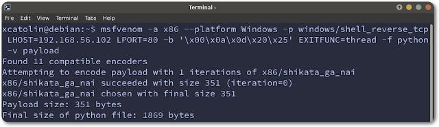 Now, with the help of MSFvenom to generate the shellcode, excluding the previously identified bad characters and specifying a reverse shell payload.