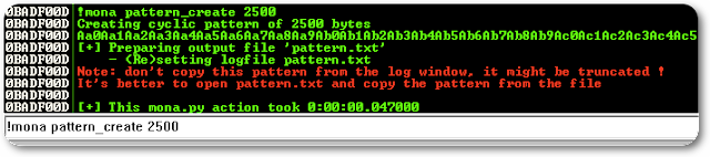 Now knowing that this is SEH based, as the SEH pointers were overwritten, it is time to identify the offset necessary to reach the exception handler record in order to precisely overwrite it with data. This can be done by generating and sending a pattern, where one can choose between a handful of tools to do this, such as Mona or MSFvenom.
